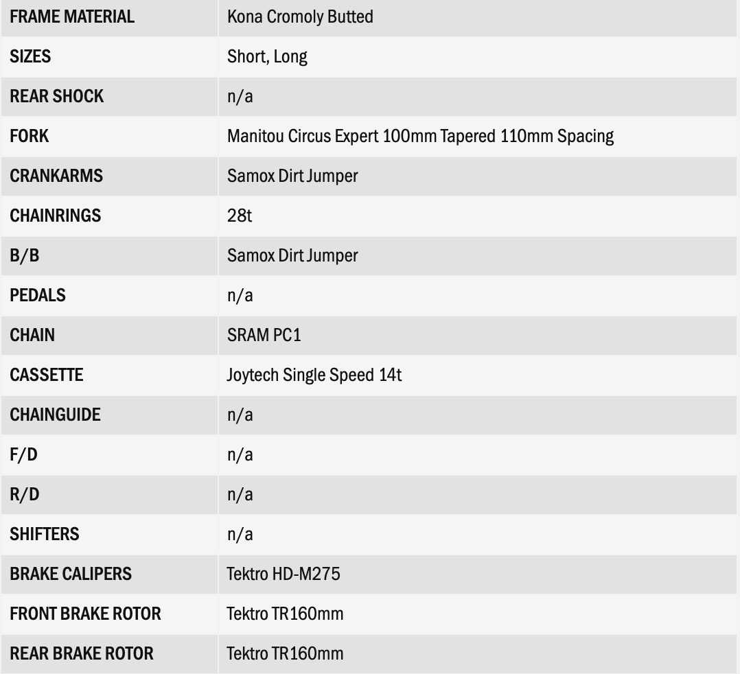 Quer seja um experiente saltador de terra ou esteja apenas a aprender a andar na pista de pumptrack do seu bairro, a Shonky é a arma perfeita para o lado mais acrobático do ciclismo. Um quadro cromoly com um garfo de 100 mm de curso proporciona suspensão suficiente para proteger os seus pulsos. Os pneus de rolamento rápido ajudam-no a fazer curvas como se estivesse sobre carris. Desde aprender a fazer as primeiras curvas até atingir as maiores linhas no parque de saltos, nada se compara a uma Shonky para garantir diversão em todas as ocasiões.