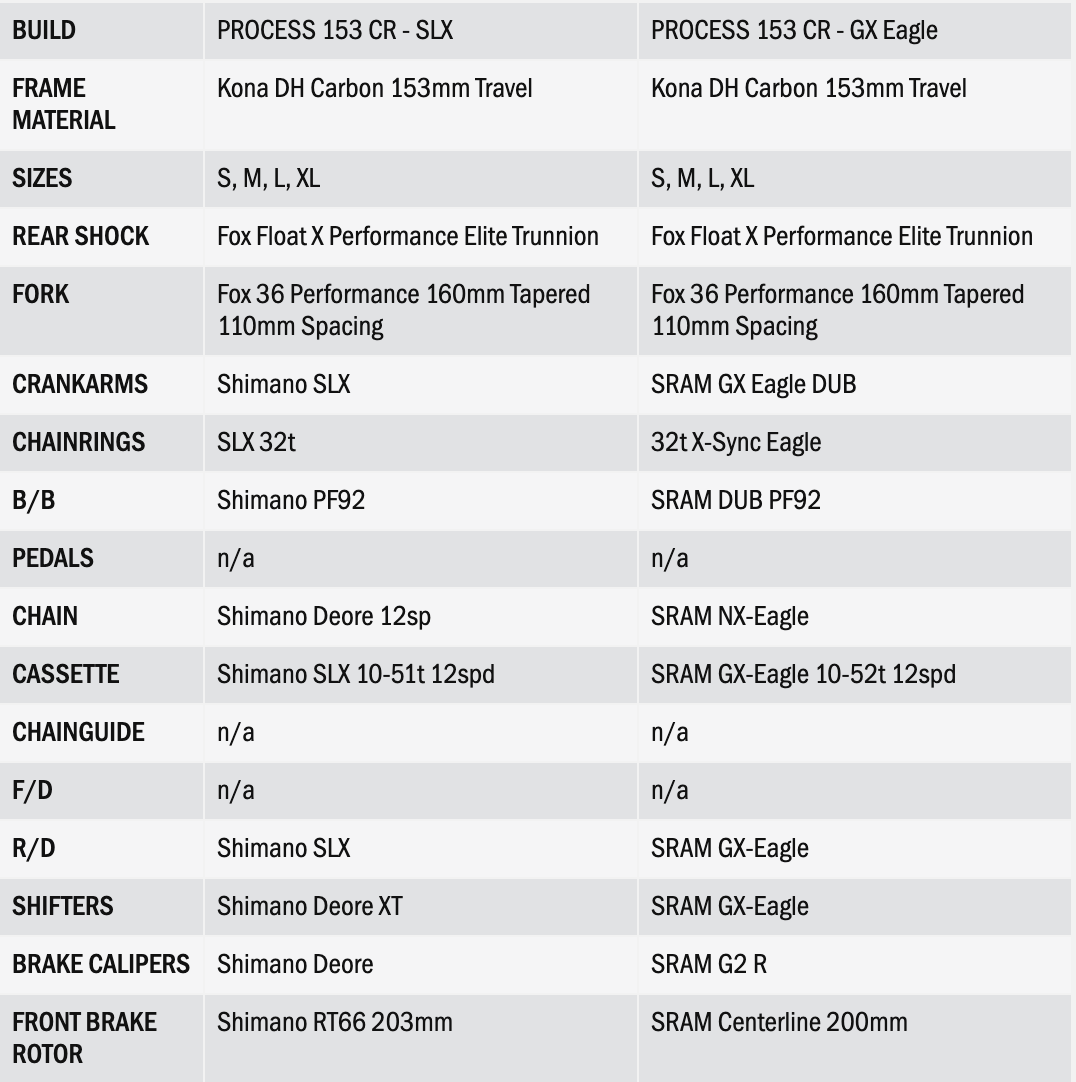 Adicione um pouco de fibra à sua dieta e vá em frente. Com o mesmo quadro de fibra de carbono do 153 CR DL, uma transmissão super fiável operada por cabo, cubos DT Swiss extremamente fiáveis e componentes de suspensão Fox Performance Elite comprovados, o Process 153 CR é o equivalente a um fato à medida combinado com ténis de corrida para todo o tipo de montanha e trilhos difíceis. Está aqui para fazer negócios e está pronta para tudo o que o mundo possa colocar no seu caminho. Todas as ferramentas de que precisa para ir tão longe quanto sonha e estilo extra suficiente para o desafiar a ir ainda mais longe. Alcançou o pico LFG. Então, do que está à espera? LFG!